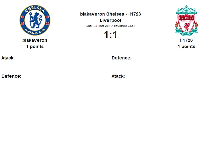 В прошлом туре лидеры сыграли между собой вничью, дав шанс преследователям, чем многие сумели воспользоваться, подтянувшись поближе – свои матчи выиграли Ливерпуль Ильяса , Челси biakaveron и Лестер Stierlitz18 , заняв в итоге 3-5 места после прошлого тура.