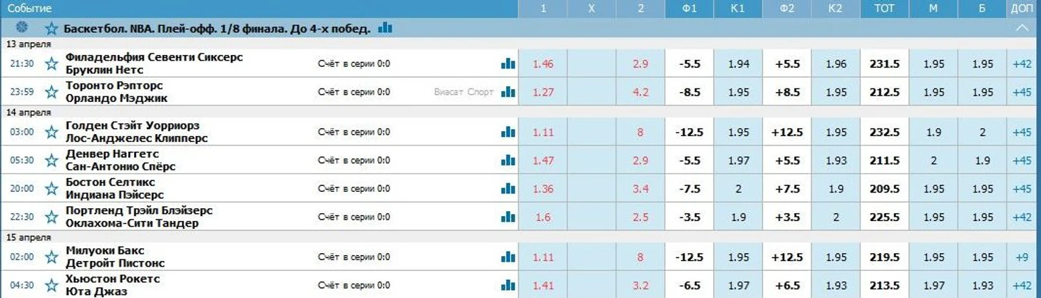 Линия на 13-15 апреля (БК Betcity)  (Скриншот на момент 13 апреля)