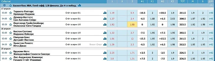 Портленд - Оклахома П2 кф. 1.95 (с уч ОТ) и Ф2 (+5.5) кф. 1.45