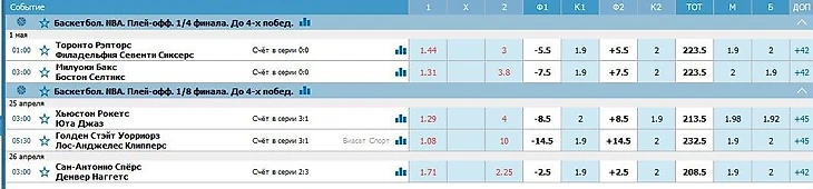 Линия на 25-26 апреля + 1 мая (БК Betcity)