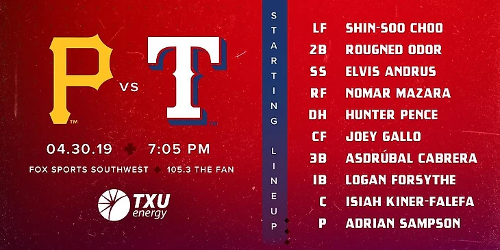 Texas Rangers (A. Sampson) - Pittsburgh Pirates (J. Lyles)
