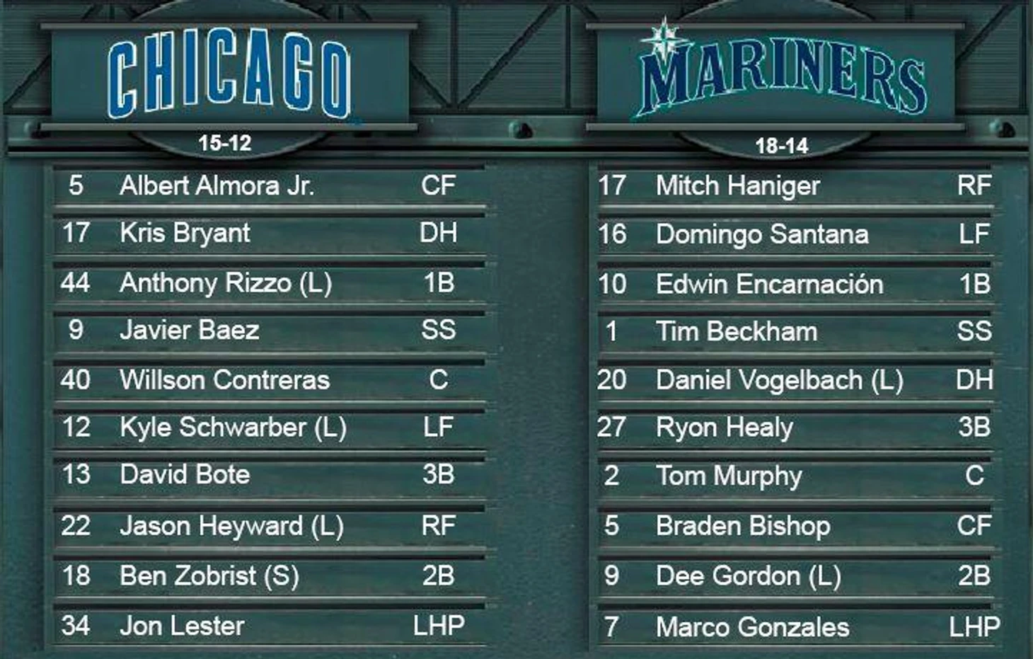 Seattle Mariners (M. Gonzales) - Chicago Cubs (J. Lester)
