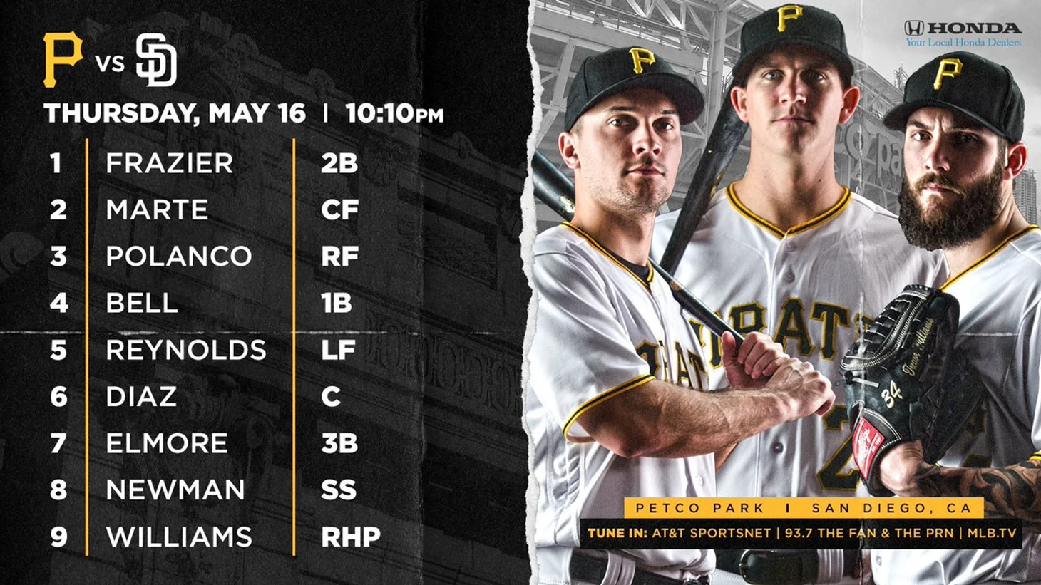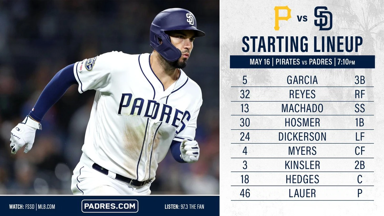 San Diego Padres (E. Lauer) - Pittsburgh Pirates (T. Williams)