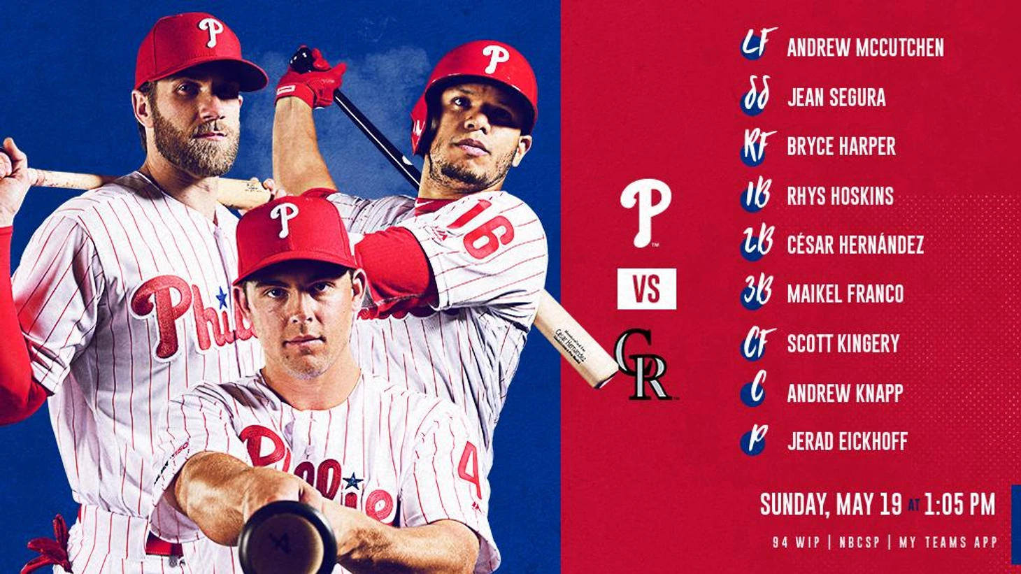 Philadelphia Phillies (J. Eickhoff) - Colorado Rockies (K. Freeland)