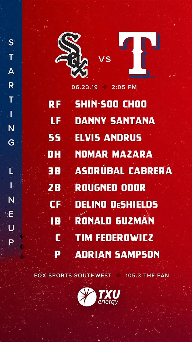Texas Rangers (A. Sampson) - Chicago White Sox (I. Nova)