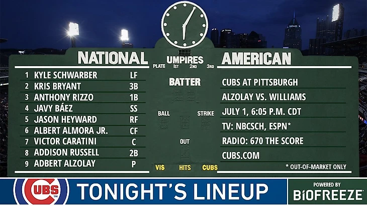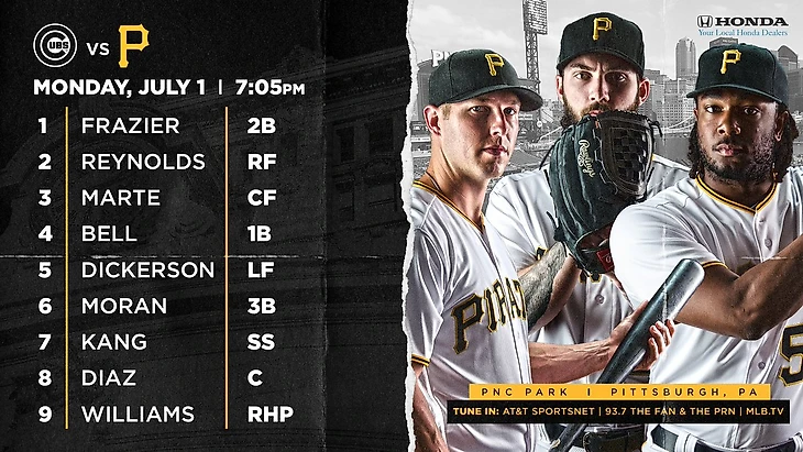 • Pittsburgh Pirates (T. Williams) - Chicago Cubs (A. Alzolay)