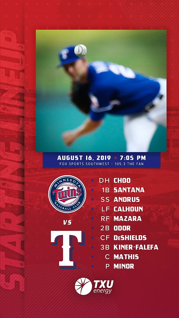 Texas Rangers (M. Minor) - Minnesota Twins (J. Odorizzi)