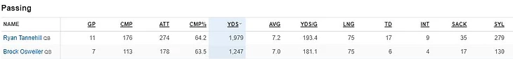 Пару слов и о команде из Флориды, "Дельфины" перестраиваются и чего то хорошего от них ожидать не стоит, они отдали Тансила, одного из лучших теклов лиги, отправили из команды Стилла, трейданули Кико Алонсо, ушел Френк Гор и теперь на вынове будет тащить Дрейк. И два бросающихся в глаза трансфера, это уход Денни Амендолы - 575 ярдов и квотербека Таннехилла у которого в прошлом сезоне была такая статистика