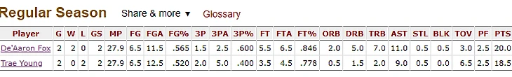 Янг и Фокс возможно самые талантливые молодые разыгрывающие в Лиге, и их команды сыграют между собой. Средняя результативность по сезону у Янга заметно выше 24.2 очка - против 18.4 у Фокса, конечно Янг больше настроен на набор очков, у него лучше бросок, в прошлом сезоне их команды дважды играли между собой, оба раза Сакраменто громило Атланту, по результатам двух матчей Фокс имел явное превосходство над Янгом, сегодня не стоит ждать разгрома, но если игроки проведут примерно одинаковое кол-во минут, то Фокс не должен далеко отпустить Трея