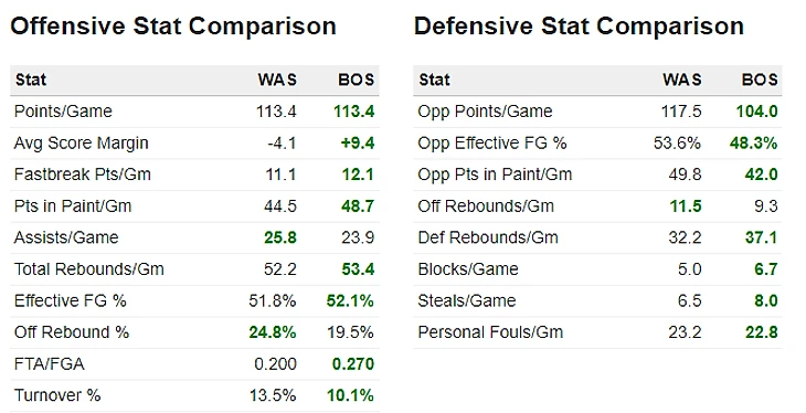 Вашингтон ожидаемо идёт 2-6, без реальных шансов на плей-офф, даже в слабой конференции, Брэдли Бил пока не дотягивает до обычных для себя цифр по реализации бросков. Бостон потеряв Хэйворда, победил дома Даллас. Если коротко, то ожидаю, что в домашнем матче Бостон не выпустит гостей выше их тотала, в отсутствии Хэйворда больше игрового времени получат Браун и Смарт, которые отлично подходят для опеки Била, Бостон как обычно в топе по обороне, команда играет с большой самоотдачей, игроки готовы выкладываться, это должно повлиять на результативность Вашингтона