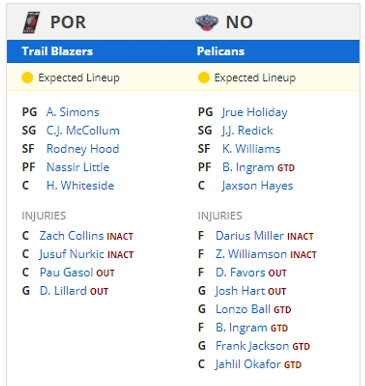 Совсем недавно стало известно, что Лиллард сегодня не сыграет, отсюда очень напрашиваются эти ставки, отсутствие Лилларда на паркете сильно ограничивает Портленд в атаке, который и с Дэймом пока выступает не лучшим образом, потенциальный выход Мэло на паркет, тоже вряд ли положительно отразится на атаке, Макколлум не может настолько влиять на атаку как Лиллард. У НОПа тоже проблемы с составом, но Фэйворс, Харт ролевики, а Бол и Ингрэм могут принять участие в матче, ввиду кадровых проблем у НОПа лучше взять Портленд на меньше, чем победу хозяев. На инд. тотал Худа ставка тоже напрашивается, он один из немногих, кто может сам себе создать момент в составе Блейзерс, в этом матче его роль обязательно вырастет. Был вариант с тоталом Макколлума, сейчас он 24.5 очка, но СиДжей начал сезон не на лучшем уровне