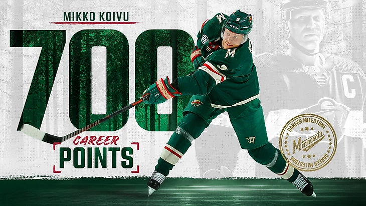 Форвард Minnesota Wild Микко Койву вчера в своем 1000-м матче регулярного чемпионата, оформил 700-е очко в карьере;