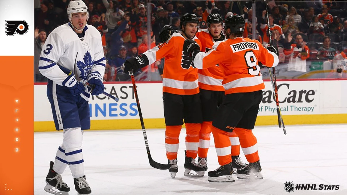 Подопечные Алена Виньйо, наконец-то, получают дивиденды от проделанной работы тренерского штаба команды, который пытался со старта чемпионата обозначить атакующий хоккей команды, но результаты все не приходили. Сейчас же Flyers имеют 5-ти матчевую серию побед, вишенкой на торте которой стала последняя домашняя победа команды над хоккеистами Toronto Maple Leafs со счетом 6:1: