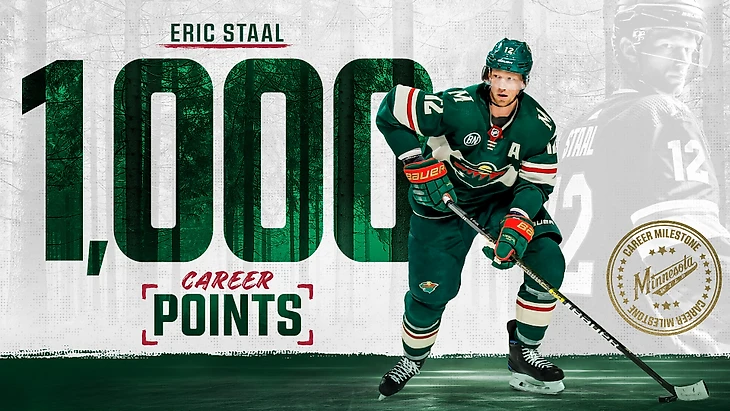 В середине первого периода выездного матча vs. Chicago Blackhawks (5:3) заброшенной шайбой в большинстве отметился форвард Minnesota Wild Эрик Стаал. Теперь на счету 35-летнего форварда 1000 очков в НХЛ — 429 голов и 571 результативная передача. Отмечу, что для достижения этого результата Стаалу понадобилось 1208 матчей;