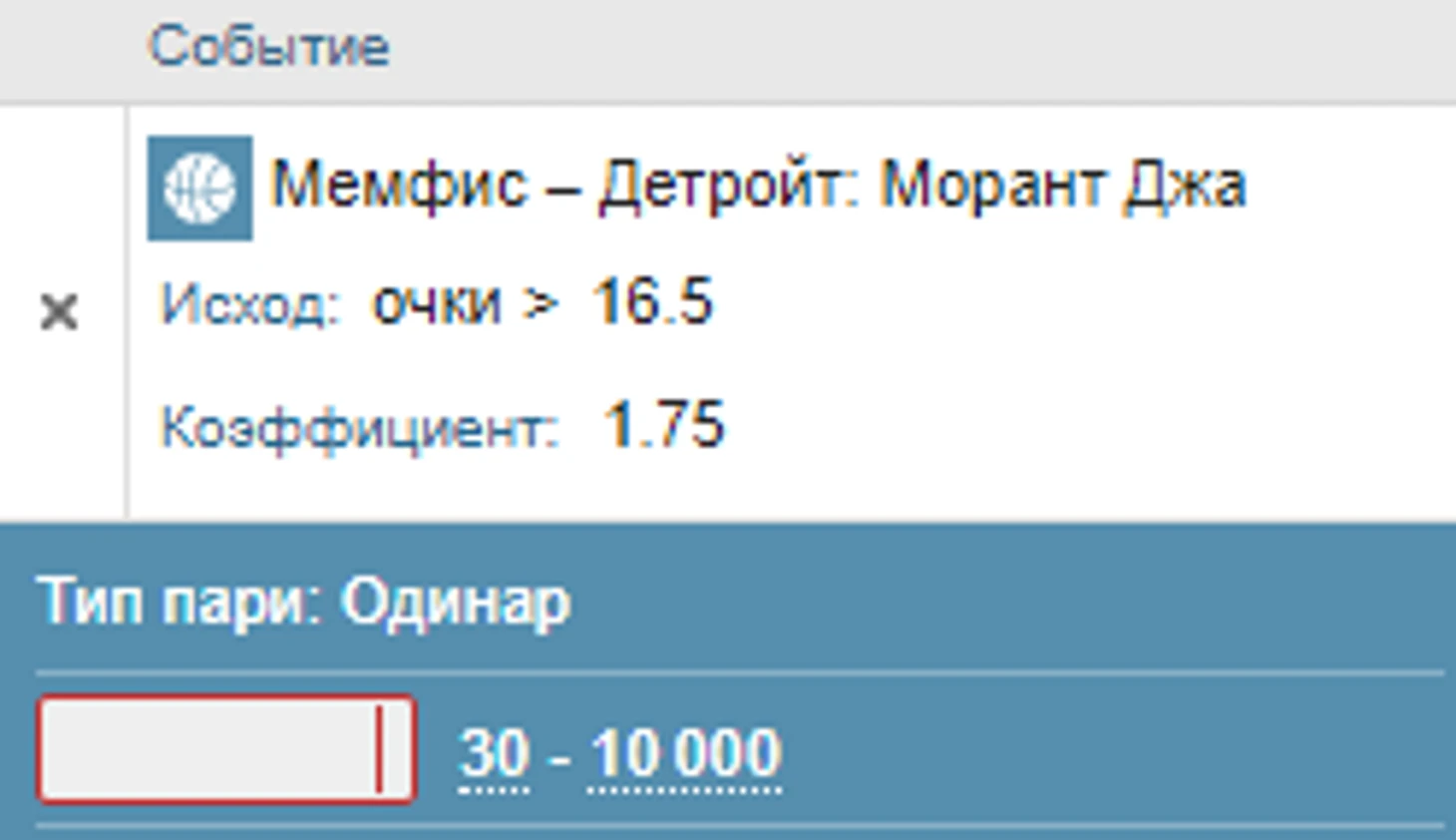 Дж. Морант больше 16.5 очков 1.75 12 очков - - -