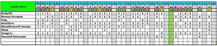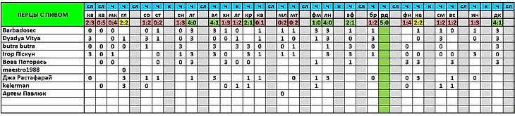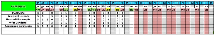 Секция л3-л1-л0 – количество личных побед, ничьих и поражений каждого игрока на линии.