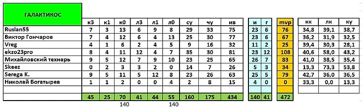 Решили мы с коллективом единомышленников попробовать возродить традицию подведения итогов прошедшего сезона. И пусть времени с его окончания прошло не так уж и мало, но статистические итоги свою актуальность и свежесть не потеряли, гарантирую! Так что всех приглашаю читать, лайкать, расшаривать в соцсетях и оставлять комментарии. Любые: восторженные, критические, с предложениями и пожеланиями, дискуссиями и даже можно в очередной раз попытаться найти себе команду на сезон, или будущих звёзд игры 7-40.