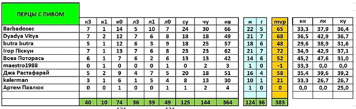 Лучшие игроки: Dyadya Vitya (68 баллов МVP, 21 матч, 7 голов), Ігор Піскун (72 балла MVP, 21 матч, 7 голов)