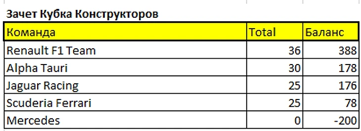 Логично видеть, что первые два места в Кубке Конструкторов, занимают именно Рено и Альфа Таури, как самые надежные машины первого этапа!