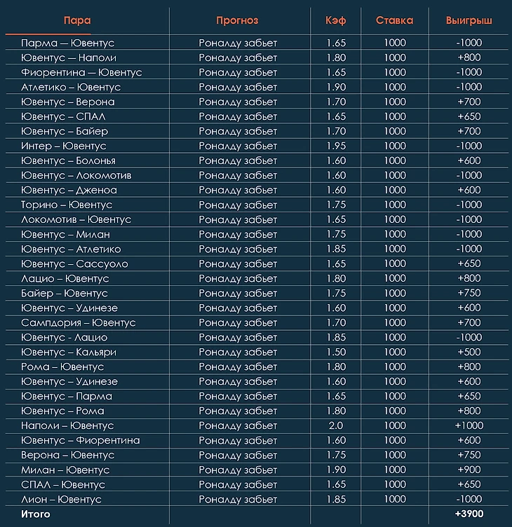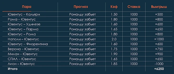 В ставках на голы Роналду плюс по сезону. При этом, важно отметить, что Роналду в новом году забивал в каждом матче и ставки на его голы просто запредельно выгодные.