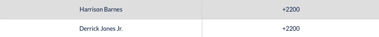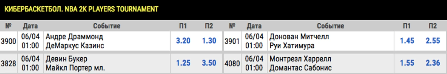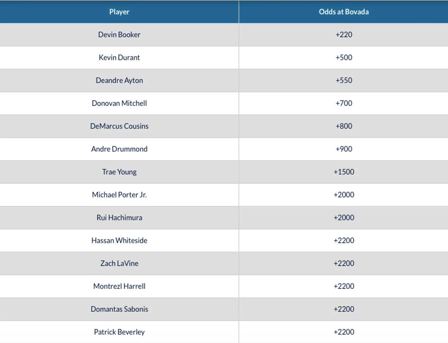 Если у вас есть сложности с переводом американcких коэффициентов на привычным нам, то на Букера дают 3.2, на Дюранта – 6.0, На Деандре Айтона – 6.5, на Донована Митчелла – 8.0, на Казинса – 9.0 и на Драммонда – 10.0.