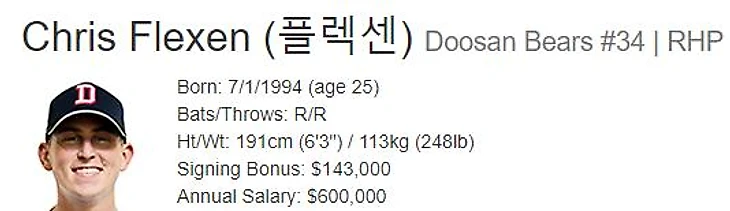 📝 На этот раз я сыграю уже победу Дусана, вчера они без проблем одолели “Твинс” использовав слабость Сонг Еун Беома с левшами. Сегодня у Дусана выйдет посерьезнее парень, Крис Флексен который прошлый сезон провел в Метс и отыграл там всего 14 иннингов, и за это время отбиваемость составила .268, что не так и много, а вот WHIP - 2/05, а это значит что у него проблемы с контролем подачи, но это КОрея и уровень здесь куда слабее, а это значит что Флексен должен справиться.