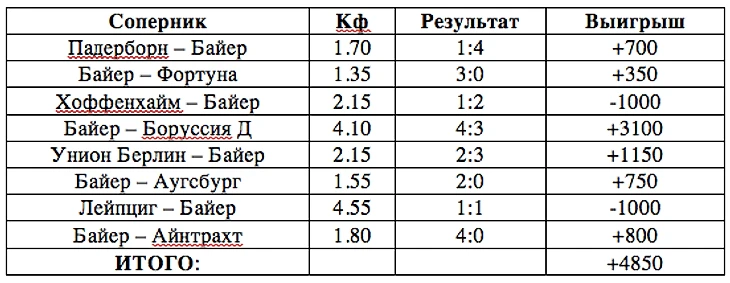 До паузы именно Байер был самой прибыльной командой по сезону, в 2020 году и по динамике последних туров. Как будет с 16 мая, посмотрим, но на заметку взять точно стоит.