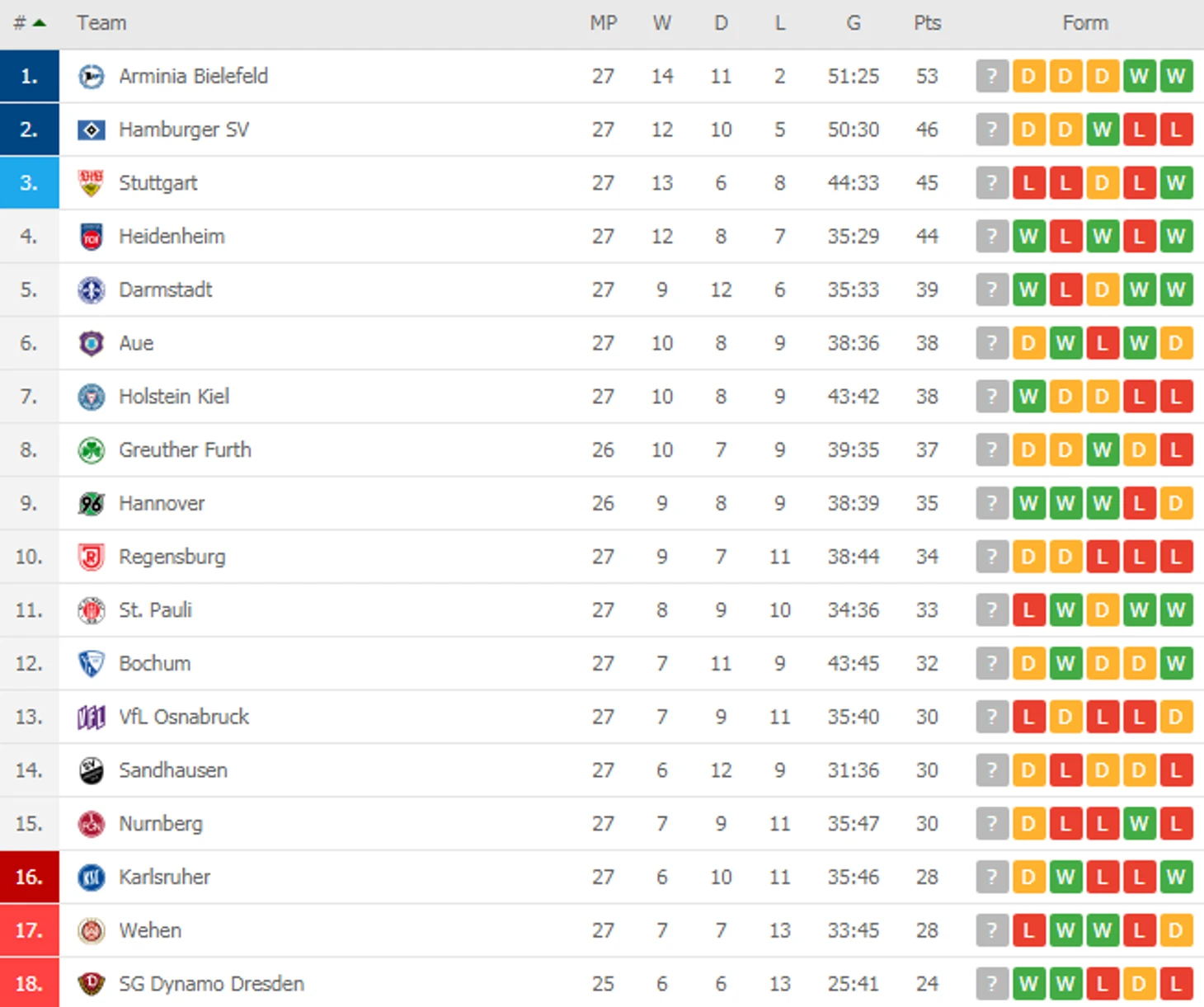 Турнирная таблица: