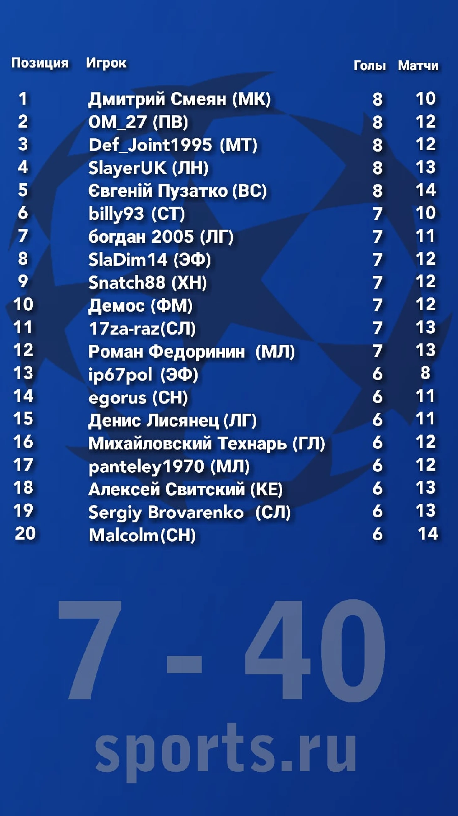 Если уж говорить о бывших лидерах… Единолично возглавлявший ранее список бомбардиров SlayerUK не забивает уже 4 матча.