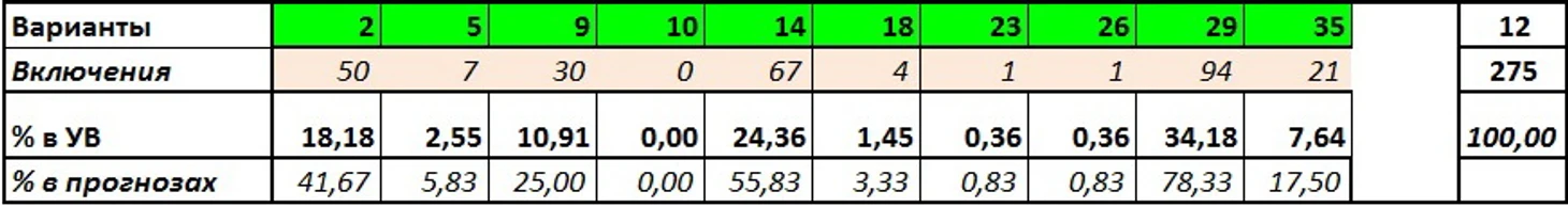 Сумма угаданных вариантов: 275 из 840 (32,74%)