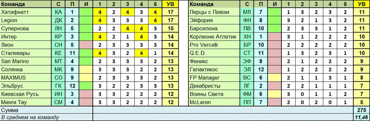 В общей таблице, как мы уже упоминали, у нас опять новый лидер – Эйфория. Четыре свободных вакансии лаки лузеров занимают бывший лидер Лион и три представителя Огня. Таким образом снова все 6 огненных коллективов находятся в зоне плей-офф прямо сейчас. Первым не проходящим в кубковый раунд сейчас является FP Manager, занимающий 17 место.