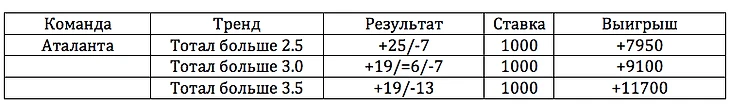 К слову, тренд верховой "Аталанты" остается самым прибыльным в сезоне. Причем тотал больше 3.5 с участием "бергамаски" куда выгодней классического верха.