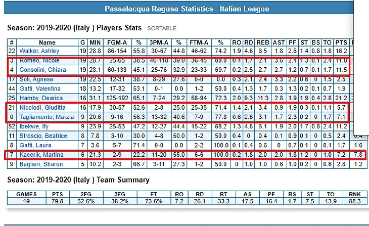 Из добротных людей остались Бегич которая бигмен (191 см) которая делала 12.8 очков + 7.6 подборов, она и трешки может кинуть. на месте Тассинари - 7.1 очков, а так же ДАли- 6.4 очков. Остальные второстепенный персонал не для игры на высоком уровне.