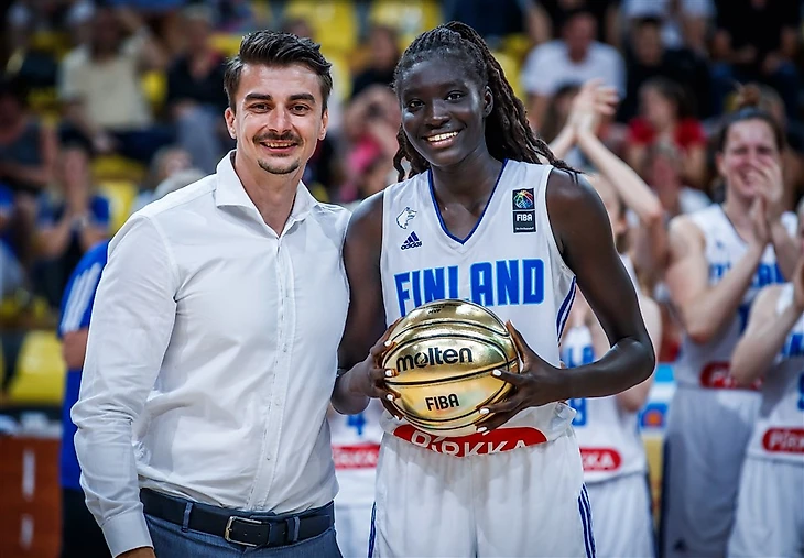 Она играет за сборную страны, родилась в 2001 году, ей сейчас 19 лет и рост 195 см, есть мнение что будет еще выше. В прошлом сезоне играла на родине за академию Хельсинки и набирала 26.1 очков + 12.2 подбора при точности 54.3% с игры и 38.2% на дуге, у нее две проблемы - штрафные 57.3% и потери, в среднем 4 за игру. Но, так как она очень много получала мяч в Финляндии, само собой в намного более сильном чемпионате Италии она такого не увидит. Вот и в первой игре она сделала 10+12 при 2 потерях .