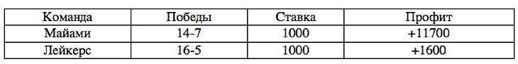 Как видим, с точки зрения ставок Майами был куда прибыльнее, причем, как в целом в плей-офф, так и конкретно в финале. Два выигранных матча при четырех проигрышах обеспечили профит в 2500 рублей, при ставке флетом в 1000 рублей. Всея благодаря отличному коэффициенту на их победу – 4.25.