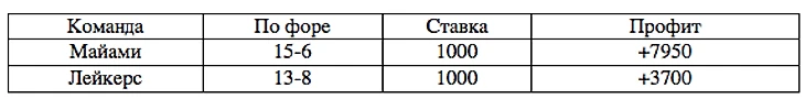 Но «Хит» не стали сливаться и боролись, что отразилось по форам, несмотря на победу в серии Лейкерс 4-2, относительно букмекерского гандикапа равенство: 3-3. К слову, после неожиданной победы «Майами» над «Лейкерс» в пятом матче финальной серии букмекеры возобновили прием ставок на победителя плей-офф. Тогда на чемпионство «Лейкерс» давали коэффициент 1.12 и 5.5 на «Майами».