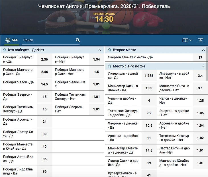 По той же причине произошел обвал котировок на чемпионство Эвертона. Перед началом АПЛ-2020/21 букмекеры предлагали на победу «Эвертона» коэффициент 501.0. Однако на старте сезона «ириски» одержали 4 победы в 4 турах и единолично возглавили таблицу. С учетом Кубка Лиги победная серия «ирисок» впервые с 1987 года достигла 7 матчей.