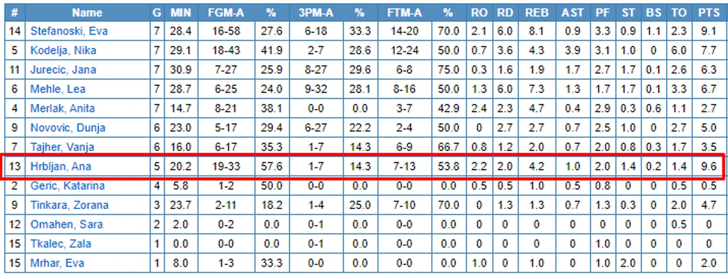 Их состав ужасающ, еще и не играет по причине травмы Хрбжан - 9.6 очков у которой 57.6% с игры, у лидеров же клуба Стефановски - 9.1 очко за игры при 27.6% с игры, Юречич - 26.9%, Мейле - 24%.. ценр Мерлак - 38.1%..