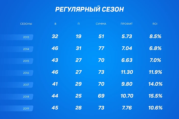 Причем до локаутного сезона 2012/13 г. плюс держался в районе 20%, потом показатели стали чуть скромнее, но положительный профит никуда не делся, а единственный месяц с отрицательными показателями оказался аккурат в локаутный сезон-2012/13, когда игры начались в январе. После локаута цифры такие.