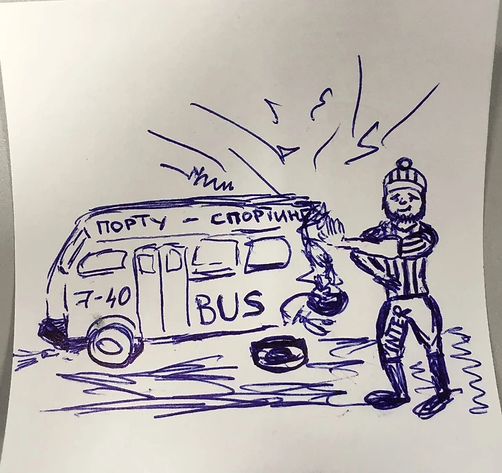 Этот забавный рисунок, как вы догадались, показывающий противостояние "Автобуса" и "Интера", мы не смогли не вставить в сегодняшний пост. Нарисован он талантливой рукой одного из игроков "чёрно-синих". Вы тоже можете что-нибудь сочинить, мы с радостью опубликуем Ваше произведение!