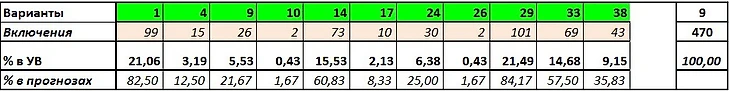 Сумма угаданных вариантов: 470 из 840 (55,95%)