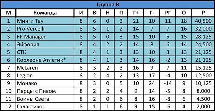 Матч лидеров группы B закончился минимальной победой Мингов, благодаря чуть более сбалансированным и точным прогнозам. Игроки Менеджеров пошли кто в лес, кто по дрова с выставленными вариантами. Кто-то набрал 1УВ, кто-то 5. У горцев всё было более стройно и командно. Как итог – лидерство по УВ 22:16, что позволило хоть и внешне непросто, но с запасом взять 3 очка.