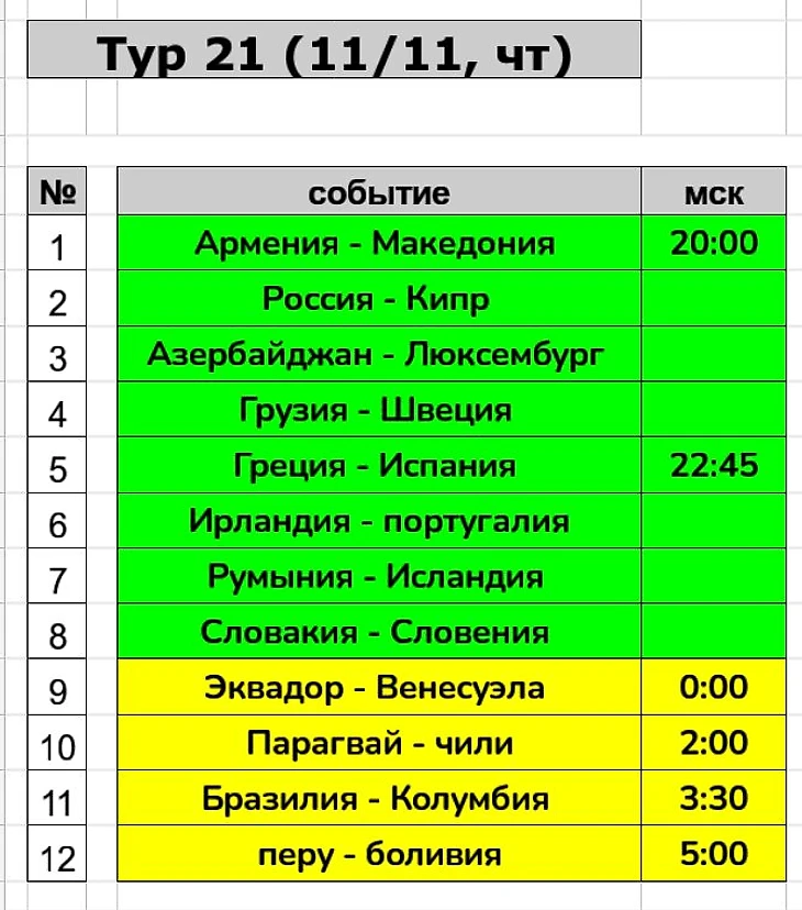 Тур проводится в один день. В каждом туре предлагается спрогнозировать 12 матчей. Дедлайн час до старта первого матча. После этого прием ставок завершается и все прогнозы собираются в доке чемпионата, в самом начале поста ссылка. Редактировать его может только ведущий, а просматривать все.