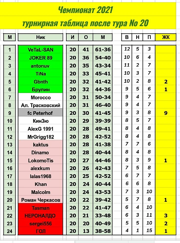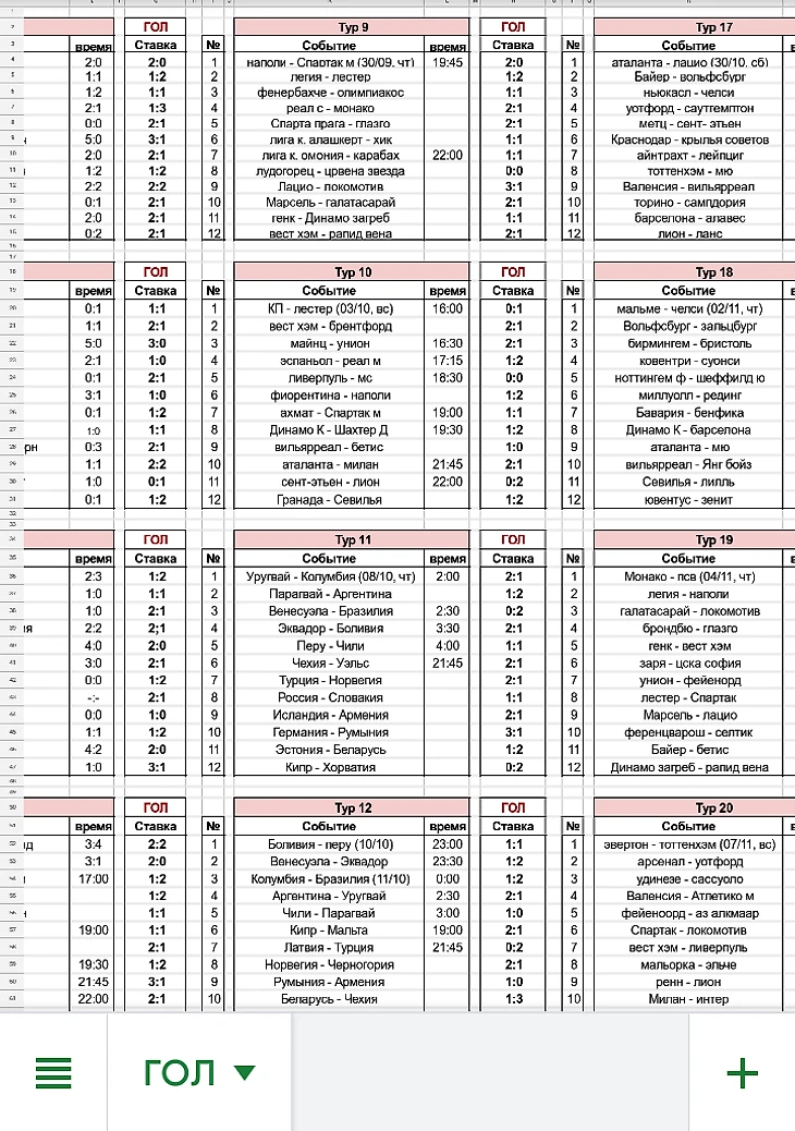 Чемпионат. Сезон 1 (август-декабрь). В гугл доке