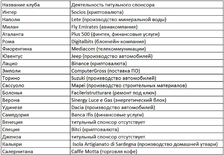 Вторым на очереди будет чемпионат Италии, где существуют свои особенности, связанные с титульными спонсорами.