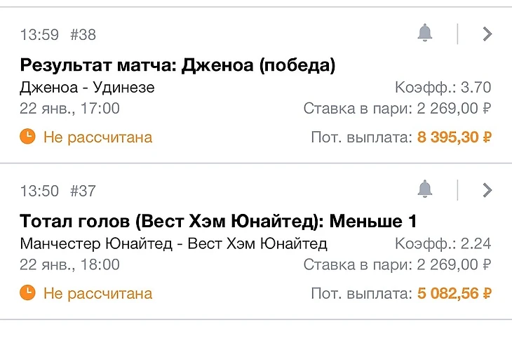 Вторая ставка - победа Дженоа дома. Дженоа и Кадис - две команды из ТОП 5 чемпионатов, которые ни разу не выиграли дома. Я упертый парень, поэтому беру победу Дженоа в матче.