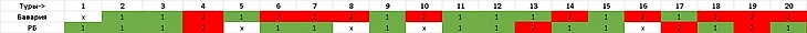 Не долго думая, я решил посмотреть статистику Баварии и РБ в этом сезоне по исходам.
