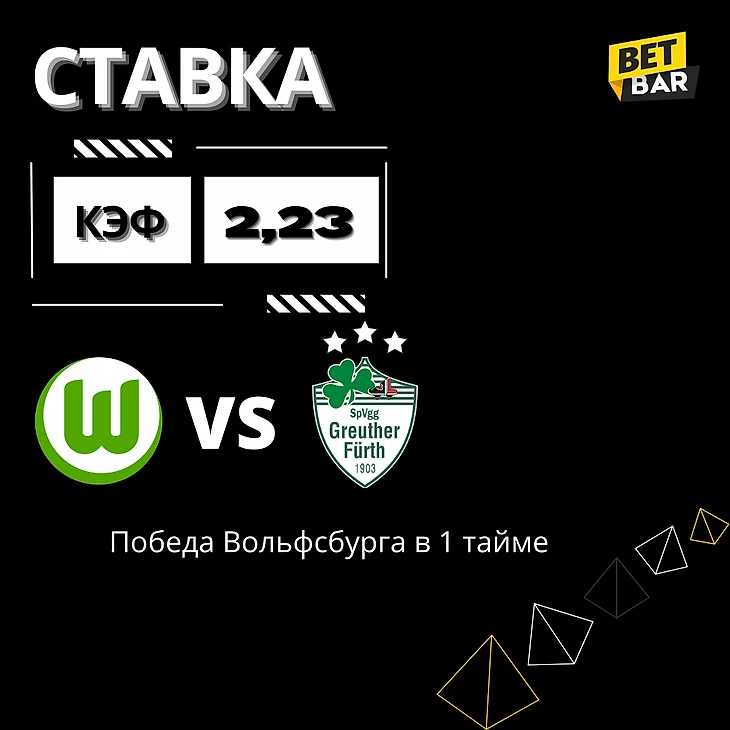 В качестве второго матча была выбрана игра чемпионата Германии между Вольфсбургом и Гройтер Фюрт. На этот матч было крайне тяжело выбрать одну ставку, поэтому поделимся всеми возможными вариантами. Среди прочих выделим следующие: 1) тайм матч п1/п1 2) п1 в первом тайме (эту берем в статистику) 3) точный счет первого тайма - 1:0 4) обе забьют - нет Пишите в комментариях, что вы заиграли и делитесь своими результатами!