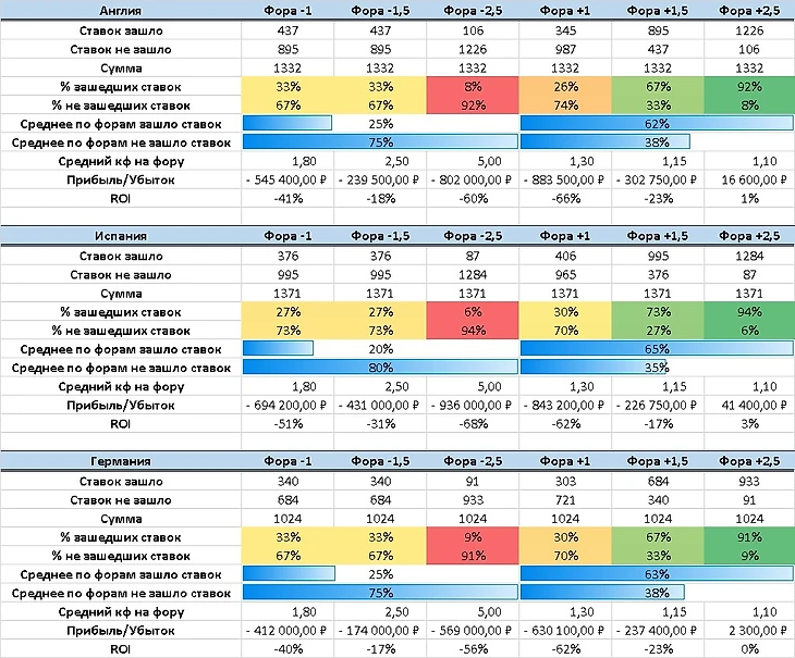 Я решил все таки покопаться и посмотреть, а какие вообще шансы на форы в ведущих чемпионатах Европы?