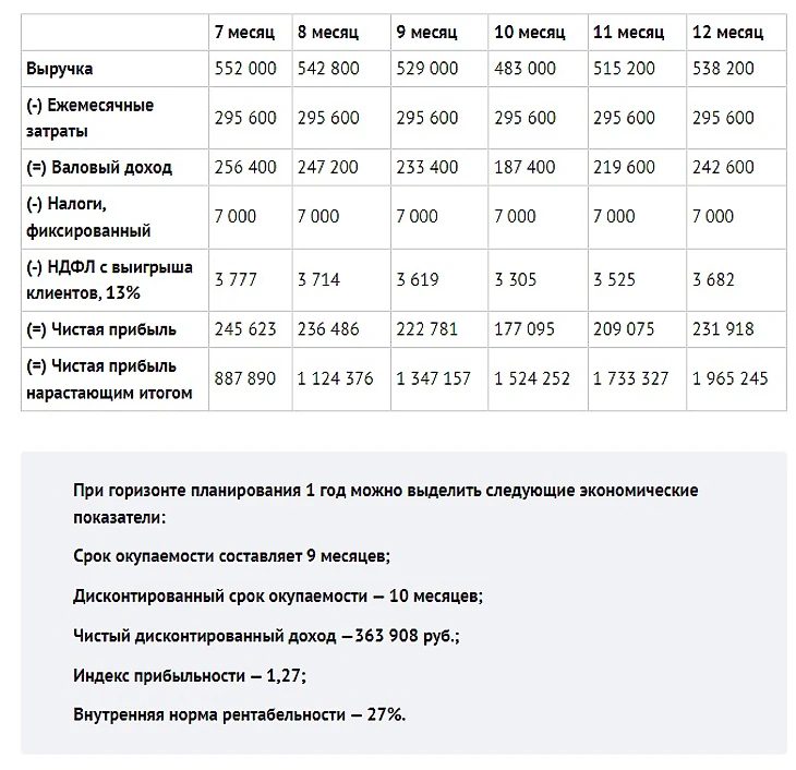 Срок окупаемости около 10 месяцев.